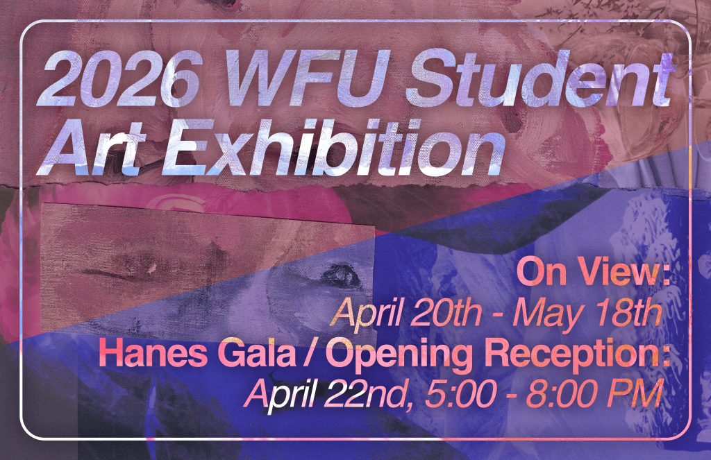 Experience the breadth of creativity from Wake Forest University’s student artists at the 2026 Annual Student Art Exhibition. This faculty-juried exhibition brings together outstanding work from across disciplines, including painting, printmaking, drawing, sculpture, photography, and multimedia. Together, these works offer a compelling look at the ideas, experimentation, and artistic voices shaping the current student community.
